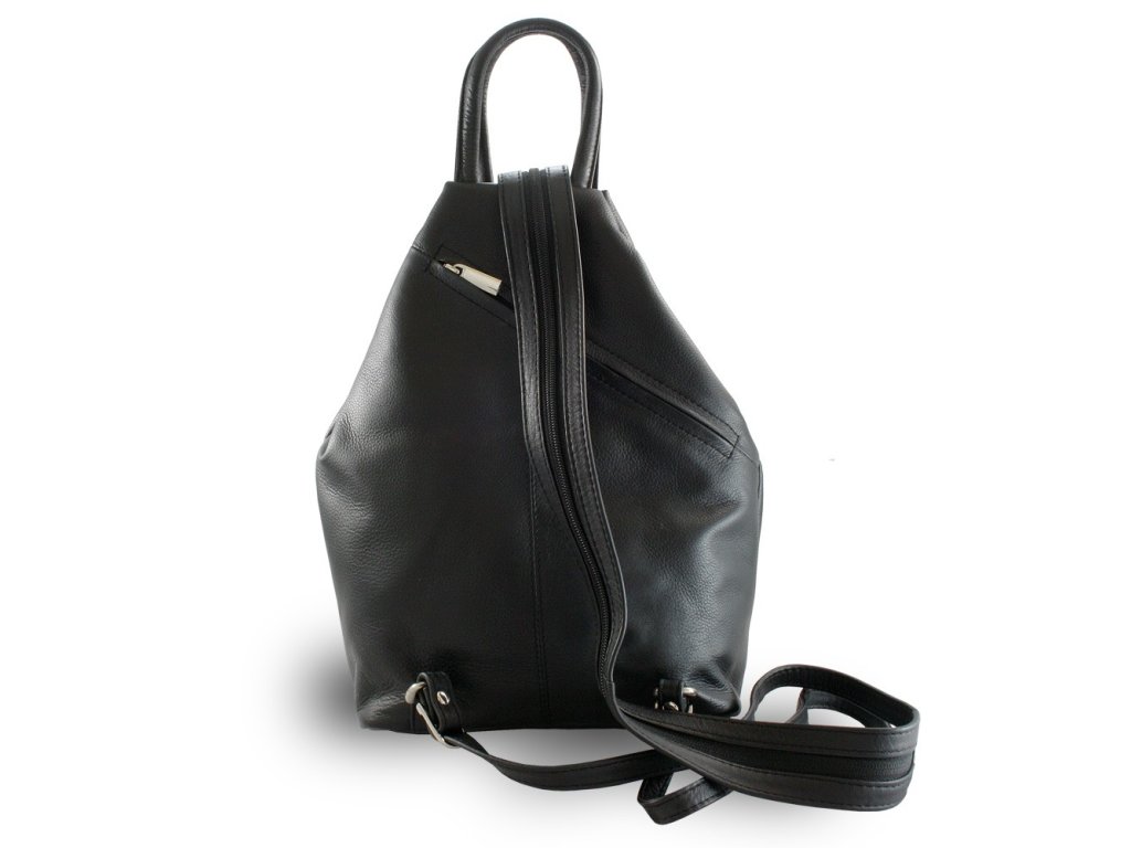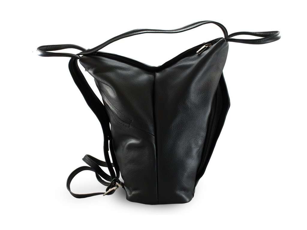 Dámský černý batoh z pravé hovězí kůže, který s vámi vyrazí do práce i na výlet. Hlavní kapsa schová svačinu, vodu i skládací deštník. Přední a zadní venkovní zipová kapsa, vnitřní separace s malou kapsou, multifunkční popruh se zipem – možnost použít na jedno rameno nebo klasicky na dvě ramena.