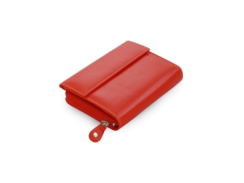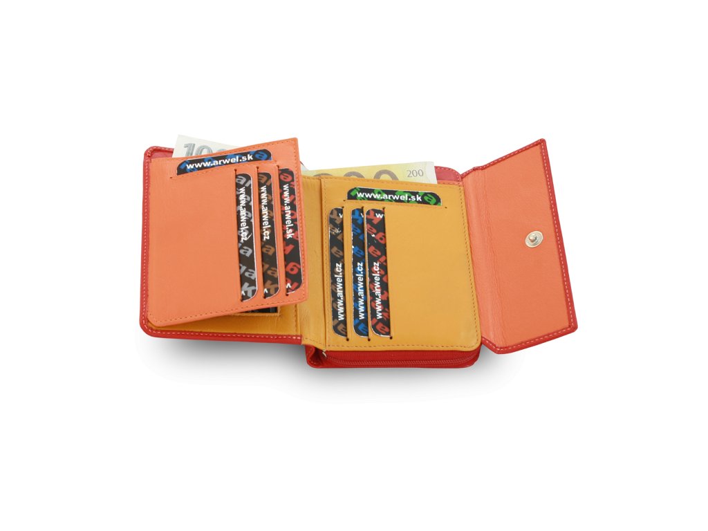 Dámská kožená peněženka Izabela v živé červené barvě je skvělou volbou pro ženy, které chtějí vystoupit z řady. Vnější elegantní červený povrch je vyroben z kvalitní pravé hovězí kůže (NAPPA) a uvnitř vás překvapí harmonická kombinace červené, oranžové a žluté barvy – teplé tóny, které působí energicky a optimisticky.