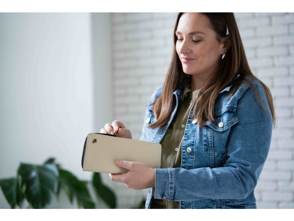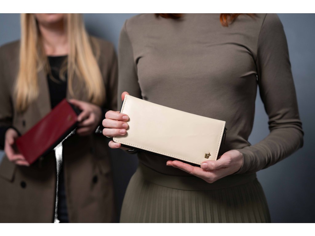 Elegantní dámská peněženka z pravé hovězí kůže (NAPPA) v béžové barvě. 2 přihrádky na bankovky, prostor pro...