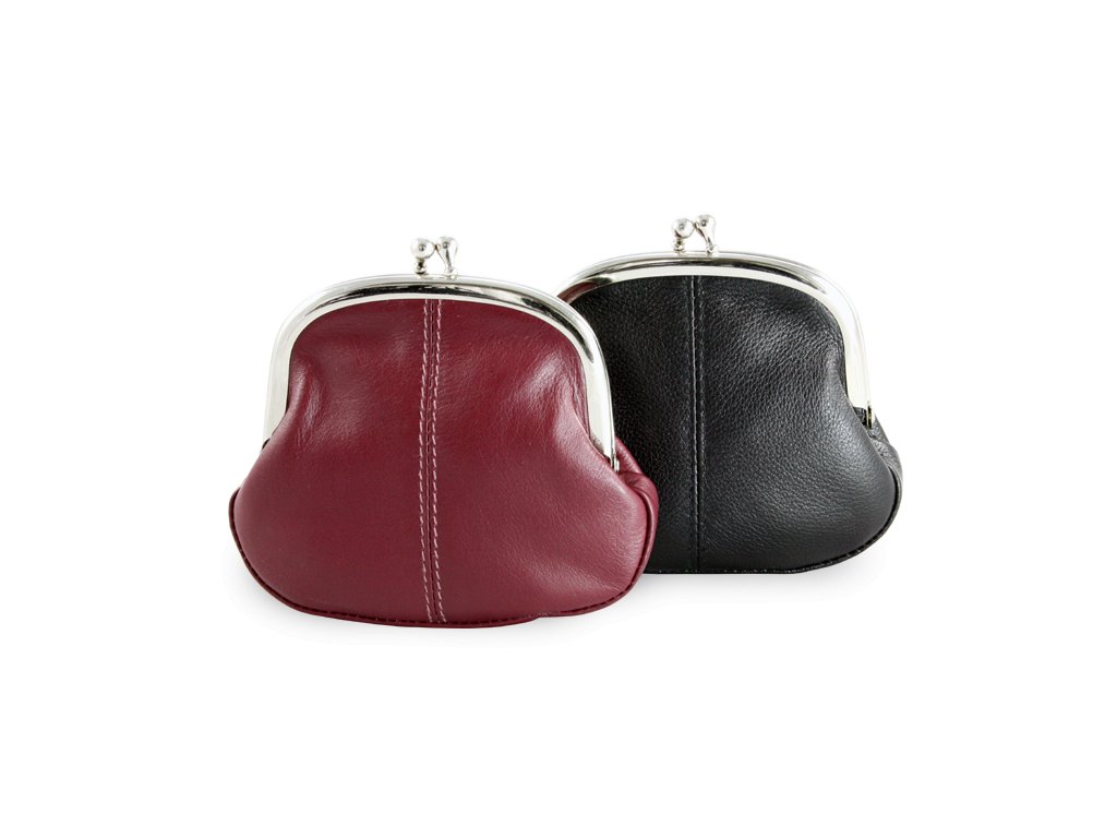 Dámská etue z pravé kůže v barvě burgundy – stylový doplněk pro mince a drobnosti s elegantním kovovým zapínáním.