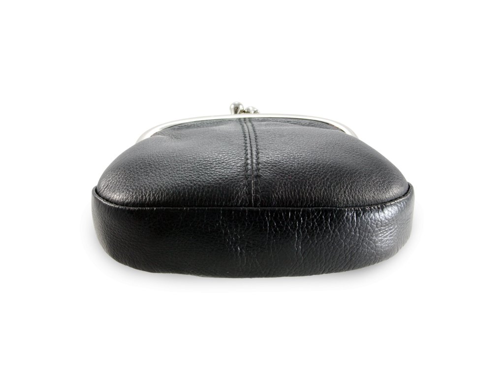 Elegantní černá etue z pravé kůže se stříbrným kováním – ideální pro doklady, mobil i drobnosti, s praktickým poutkem.