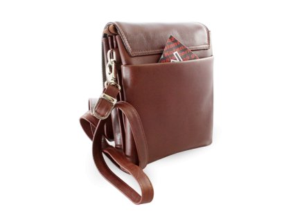 Stylový pánský crossbag z pravé kůže v kávově hnědé barvě s praktickým členěním, tmavou podšívkou a nastavitelným...