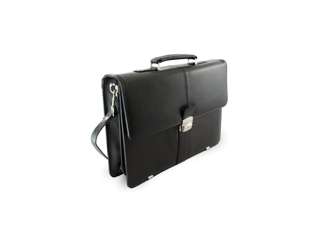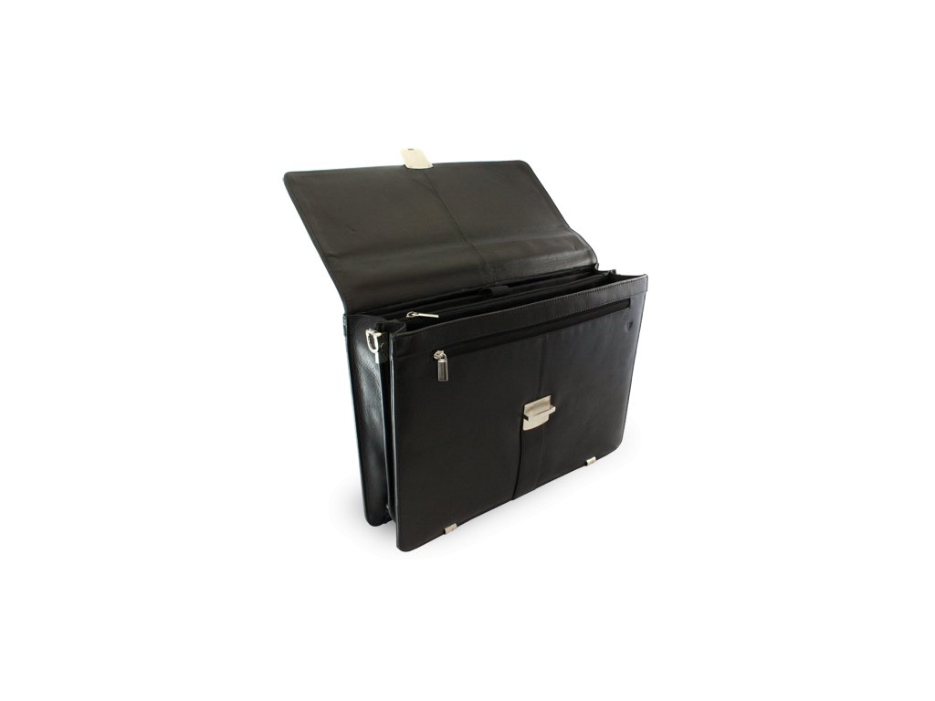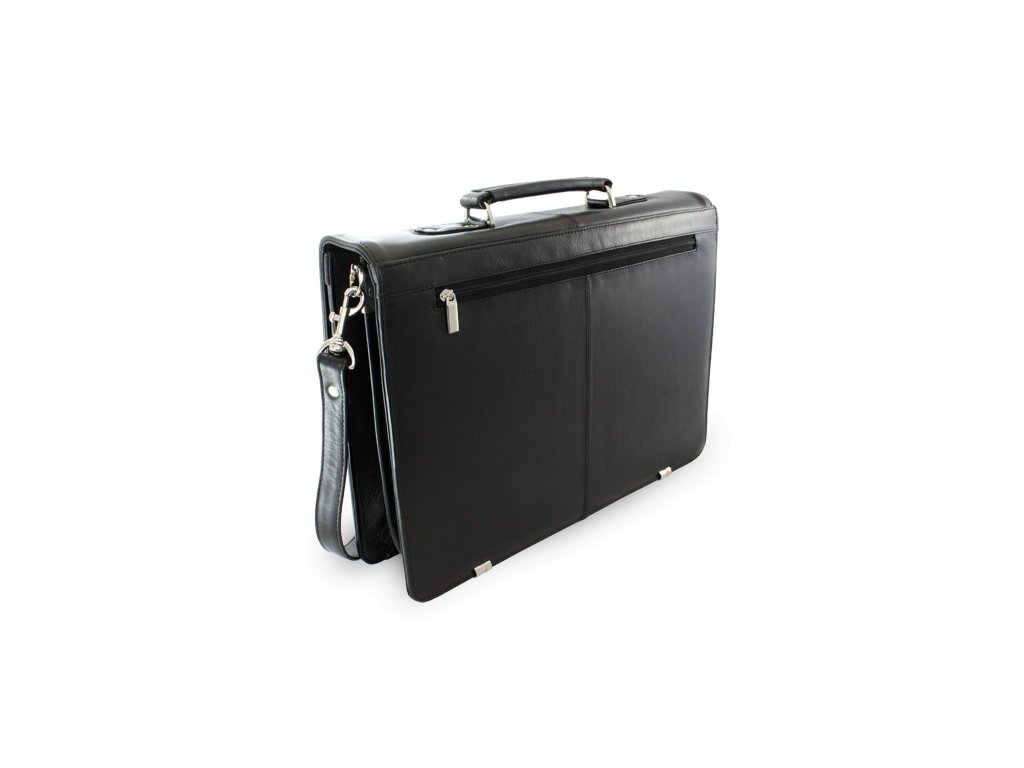 Luxusní černá kožená aktovka, ve které uvnitř naleznete 3 vnitřní separace oddělené zipovou kapsou, z toho jedna polstrovaná část pro uložení notebooku (netbooku, minibooku nebo tabletu) až do velikosti 13,3" (33,8 cm) - maximální rozměry notebooku 33 x 23 x 3,5 cm. Dále má 2 vnitřní zipové kapsy, vnitřní kapsičku na mobil a úchyty na psací potřeby, venkovní zipovou kapsu a odepínatelný popruh přes rameno. Spodní hrany aktovky jsou ochráněny kováním z lesklého niklu. Díky množství přehledně uspořádaných přihrádek, budete mít své pracovní podklady vždy v pravou chvíli po ruce. Díky odepínatelnému popruhu na rameno můžete aktovku nosit dvojím způsobem, přes rameno i v ruce. Aktovka je vyrobená z prvotřídní jemné hovězí VT kůže, díky které Vám aktovka dlouho vydrží v perfektním stavu. Zapínání aktovky lze jednoduše uzamknout a ochránit obsah před zvědavýma rukama ve chvilce Vaší nepřítomnosti.