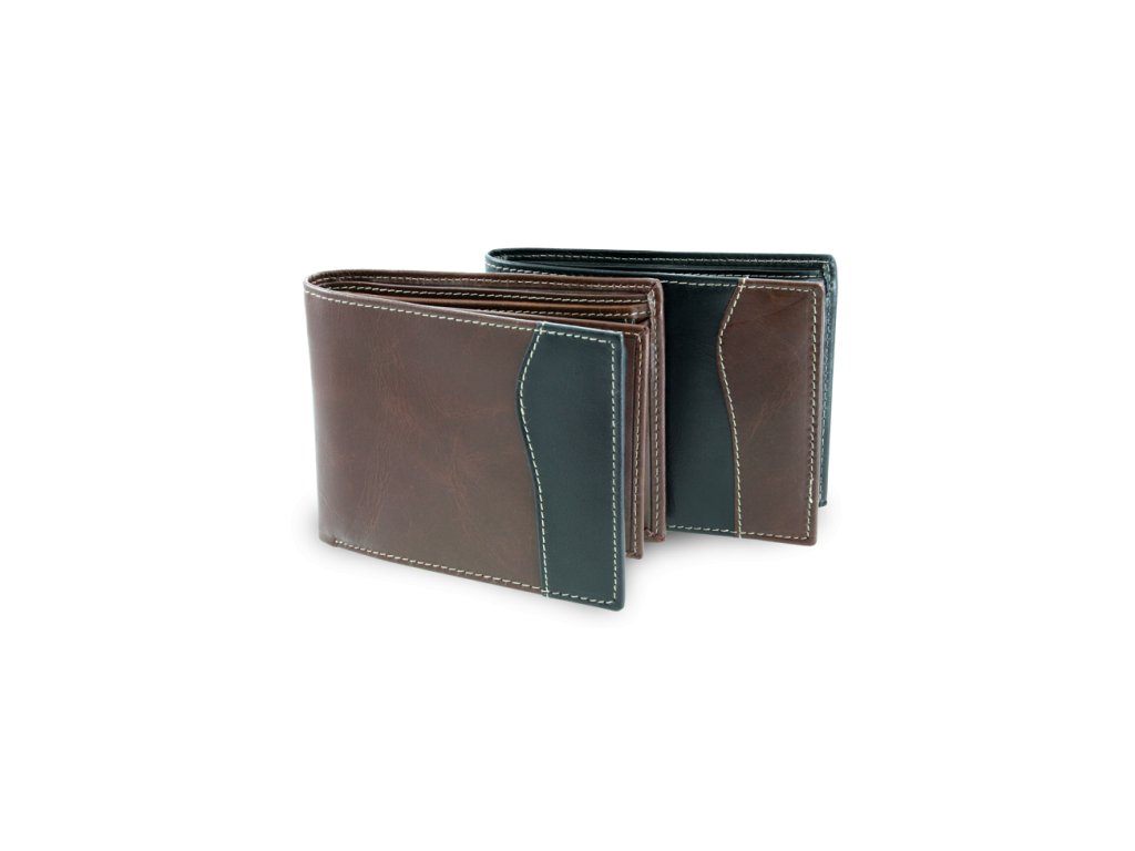 Stylová pánská peněženka z pravé hovězí kůže v kombinaci černé a modré. Nabízí přehledné vnitřní uspořádání a moderní...