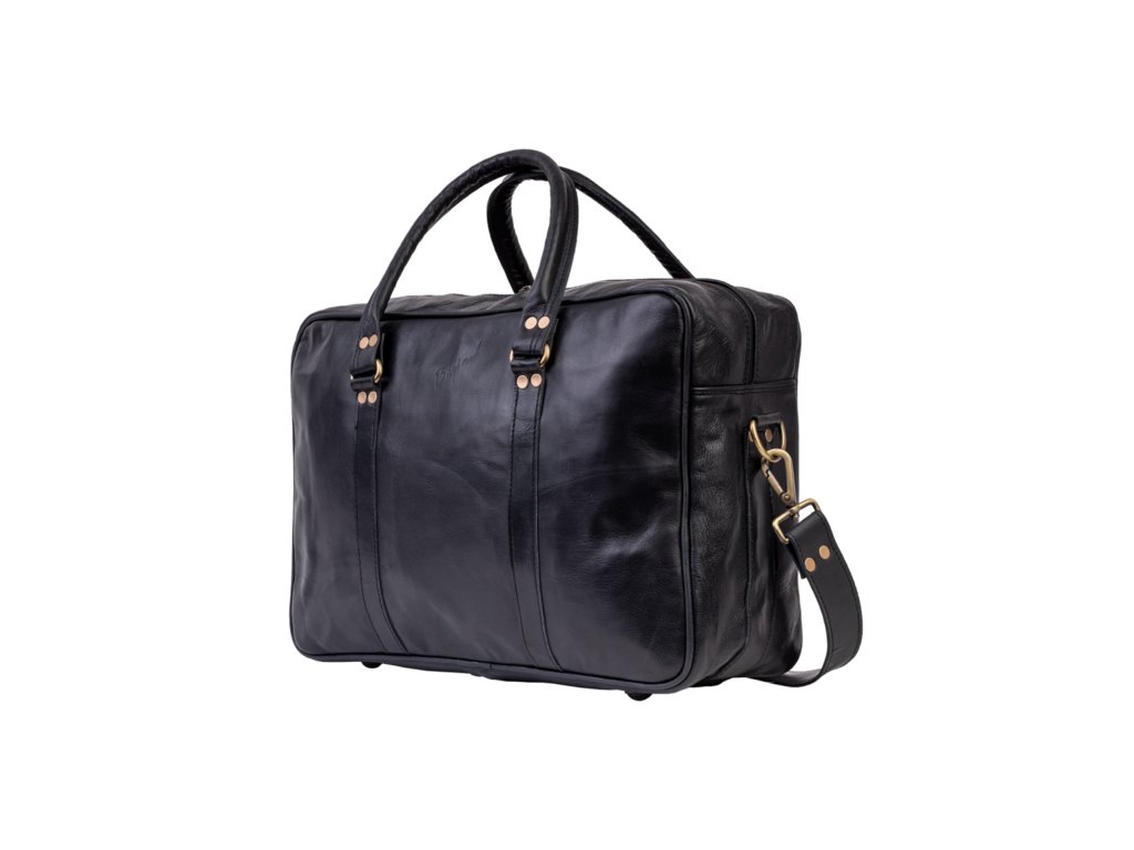Prostorná černá taška vhodná do práce i na cesty. Kromě bytelných kožených uší disponuje také odnímatelným popruhem, díky kterému ji můžete nosit v ruce i přes rameno. Vznikla na přání našich zákazníků, kteří hledali tašku do práce, do které by se pohodlně vešly i krabičky s obědem. Uvnitř najdete bavlněnou podšívku a dvě menší kapsy na zip.