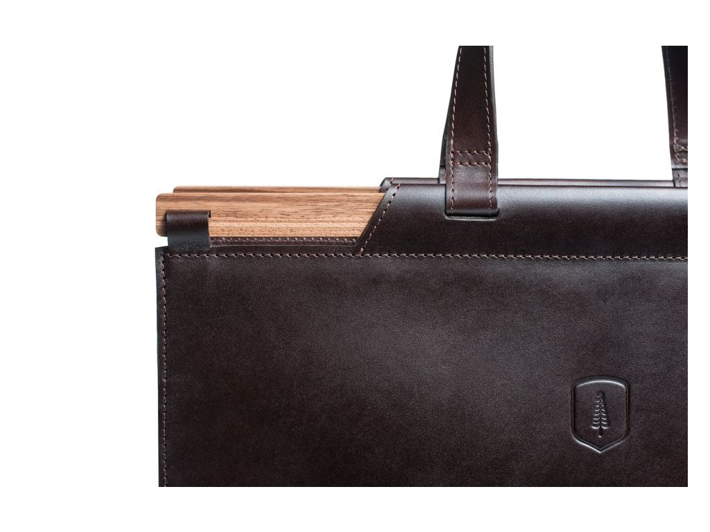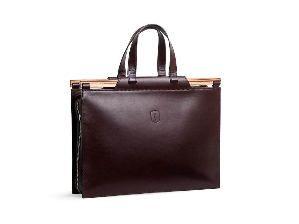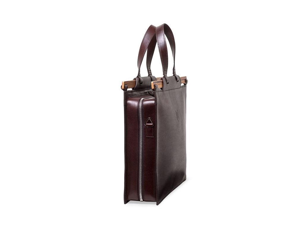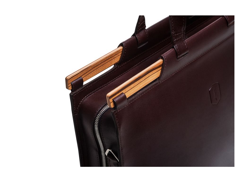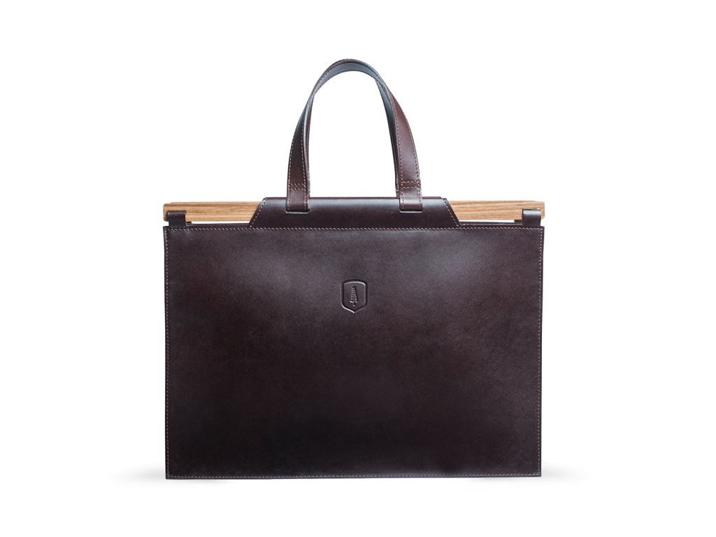 Prvotřídní pánská taška, která se vyznačuje charakteristickým spojením minimalistického designu, funkčnosti a praktičnosti. Výroba probíhá výhradně ruční prací z přírodní jemné kůže v krásné hnědé barvě, kterou doplňuje originální dřevěný detail. Uvnitř tašky naleznete kapsu na notebook, vnitřní tašku se zipem a velkým úložným prostorem, který dokáže pojmout veškeré dokumenty a nezbytnosti, které potřebujete mít stále u sebe. Tašku lze nosit dvěma způsoby nošení - pomocí dlouhého popruhu přes rameno nebo poutky do ruky. Precizní kvalitu zpracování potvrzuje doživotní záruka.