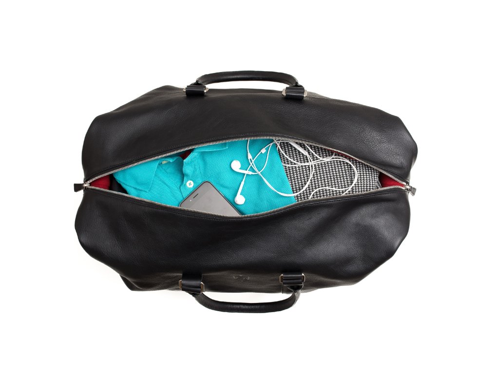 Luxusní cestovní taška v černém provedení, která pojme spoustu Vašich věcí. Uvnitř naleznete tři oddělené kapsy na peněženku, mobil, klíče a další drobné předměty. Součástí tašky je kvalitní, nastavitelný, celokožený popruh přes rameno. Taška je vyrobena z pečlivě vybrané, hovězí, třísločiněné kůže z malé koželužny v italském Toskánsku. Provedení tašky, použité materiály a komponenty splňují požadavky i těch nejnáročnějších zákazníků.