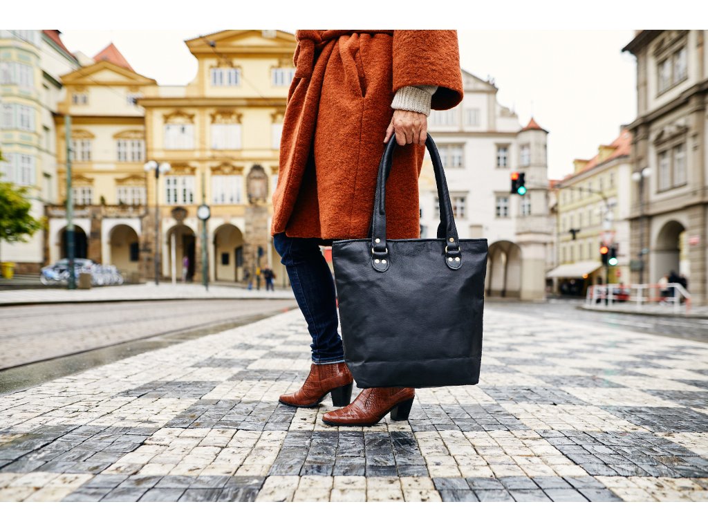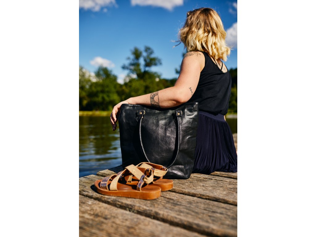 Dámská kožená kabelka Nora, černá. Elegantní kabelka z pravé hovězí kůže o rozměru 34 × 27 × 9 cm, do které se...